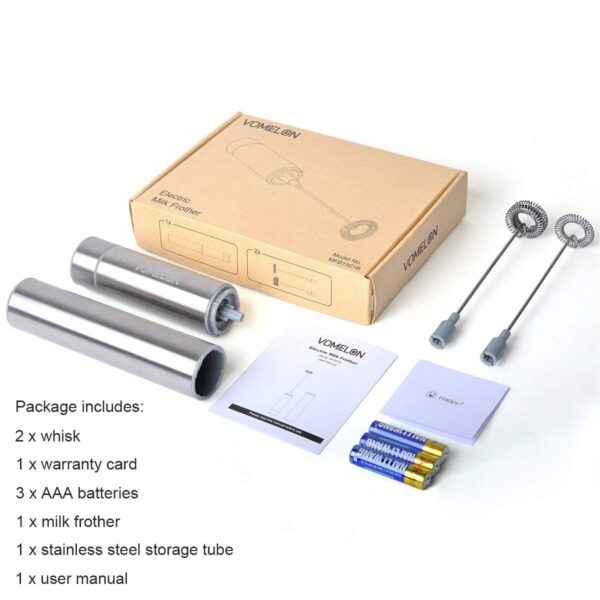 【DESIGNED FOR HOME AND TRAVEL】-The battery-operated milk frother is powered by 3 AAA batteries (included) and designed with a storage tube to prevent dust from damaging and keep the whisks clean. Putting a small frother into your handbag or suitcase takes up no space. It is a convenient and magnificent gift for your families. Get this drink mixer for your personal party and camping. Our milk frother will let you have a fantastic and fabulous experience.